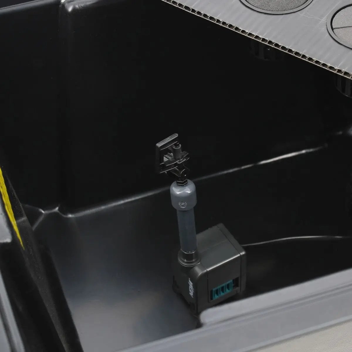 Le propagateur X-Stream 12 fonctionne en plaçant les boutures dans des pots paniers suspendus au-dessus du réservoir. L’asperseur rotatif pulvérise en continu un brouillard de solution nutritive qui est immédiatement absorbé par les boutures, sans être “lavé” par la brumisation. Ce système assure une absorption maximale des éléments nutritifs.